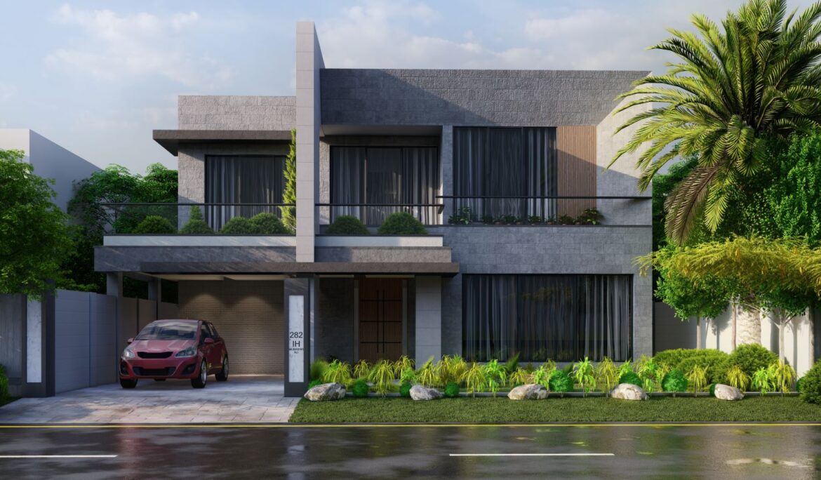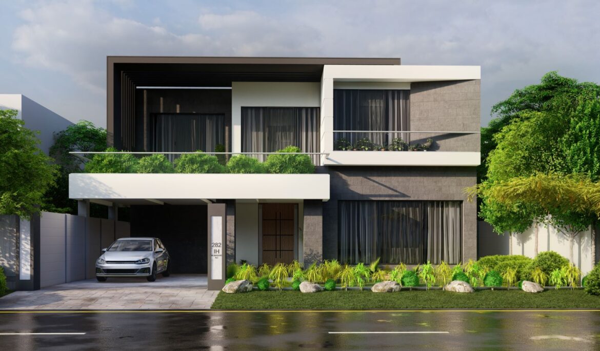 Topology : Residential Style : Brutalist Client : Mr. Ch. Ashfaq Site : Park View Society, Lahore Year of design : 2022 Plot area : 5 Marla Buildup area : 1907 SQ.FT Scope of work : Architecture Design, Structural design, Electrical & plumbing design, Geotech Survey, Architectural Renderings.